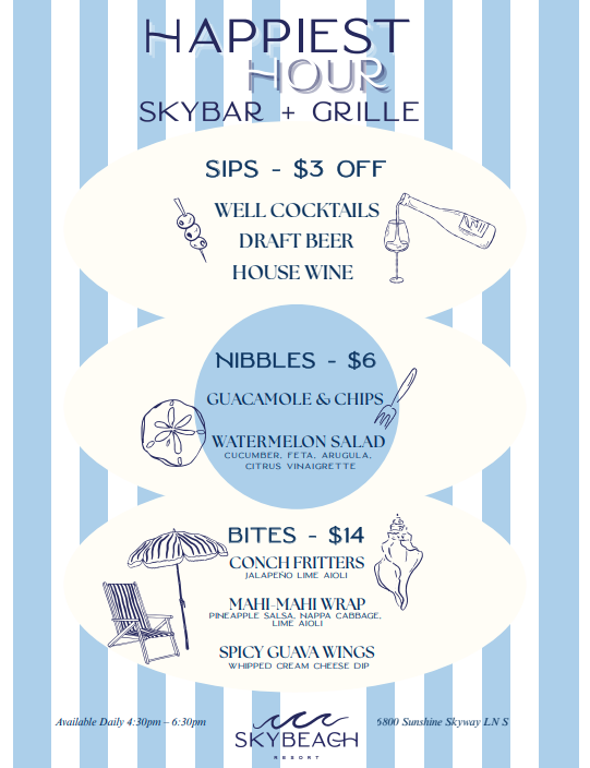 Come for the golden-hour glow, stay for the atmosphere that shifts effortlessly from lively to laid-back. Whether you’re in the mood to mingle or unwind, SkyBar + Grille offers a setting that moves at your pace—always with a view.